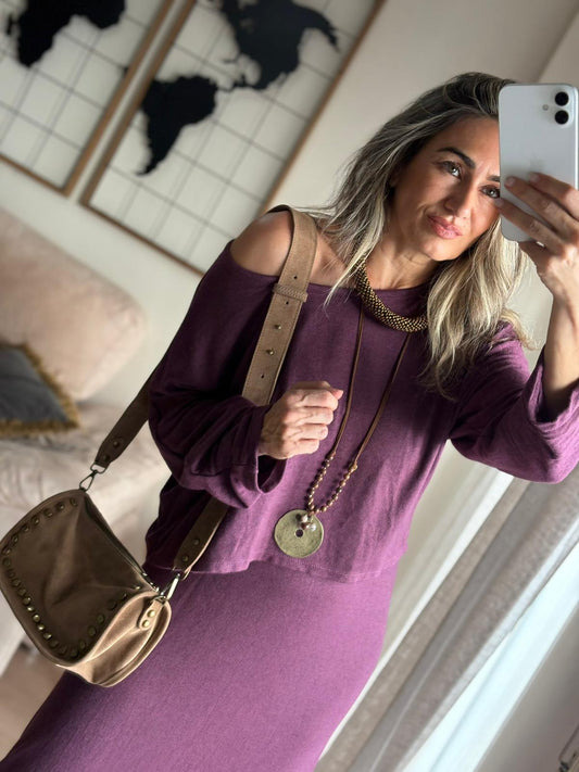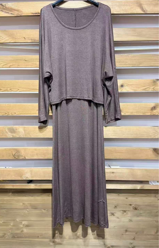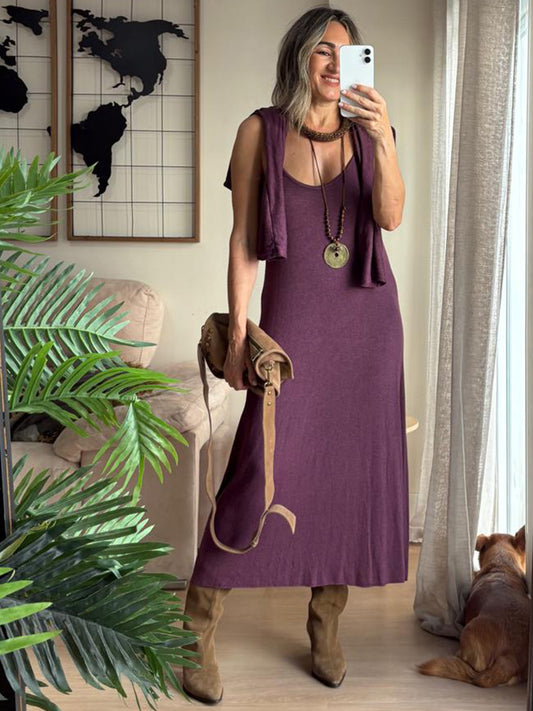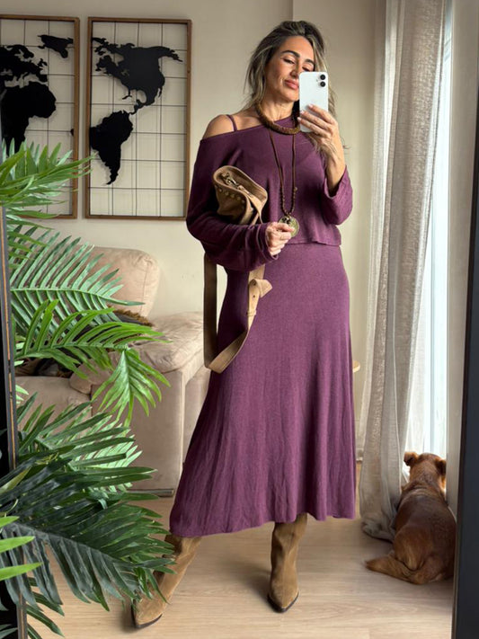 Este vestido de punto dos piezas es una apuesta segura para tus días más versátiles. Su diseño incluye un vestido de tirantes fluido y un top a juego, que puedes llevar juntos o por separado según la ocasión.