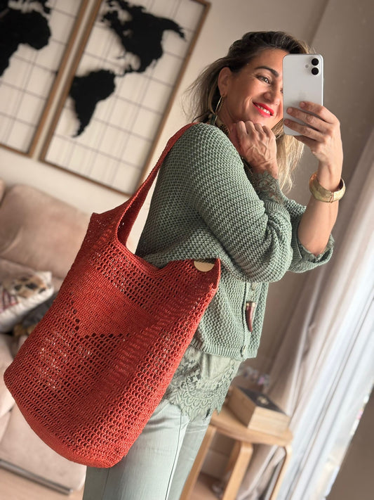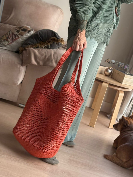 Bolso grande de 100% rafia natural, ligero y muy cómodo de llevar al hombro.