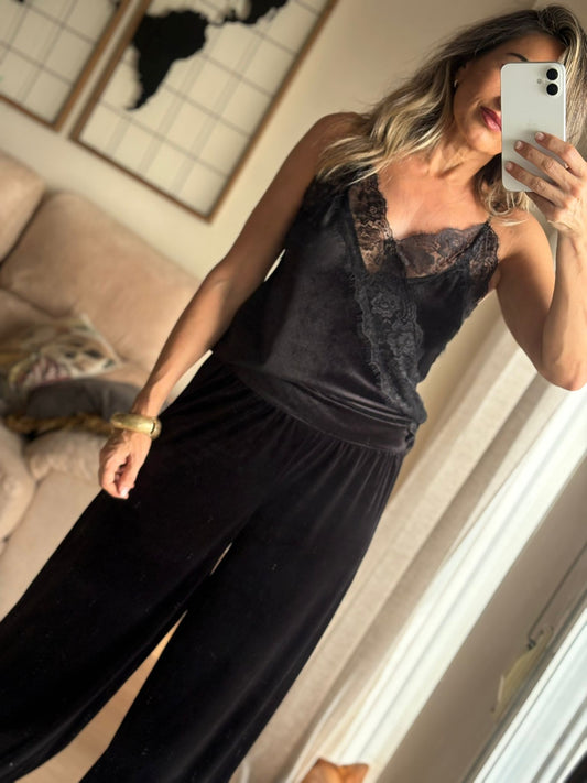 Comodidad y estilo en una misma prenda. Pantalón de terciopelo ligero con cintura plana delante y elástica detrás para recoger sin apretar. La goma en los bajos crea un efecto bombacho sutil que alarga la pierna y aporta movimiento.