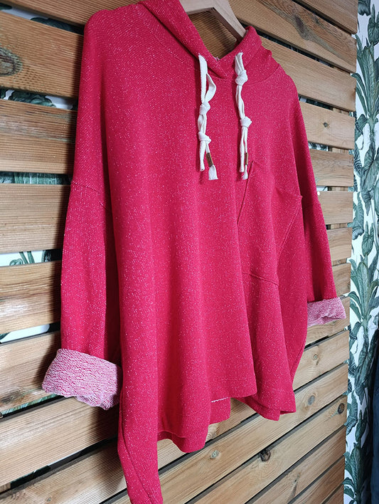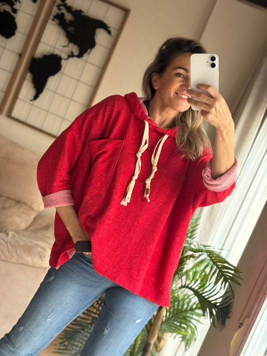 Descubre el confort elevado a tendencia con esta sudadera oversize en vibrante rojo melange. Confeccionada en un suave tejido con textura sutil, ofrece una caída relajada y holgada que favorece cualquier silueta, perfecta para looks effortless tanto en días frescos como para layering.